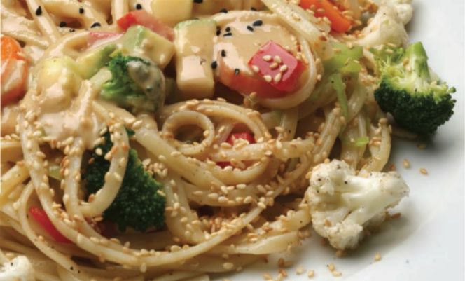 Συνταγή για νηστίσιμη μακαρονάδα με λαχανικά, σησαμέλαιο και ταχίνι