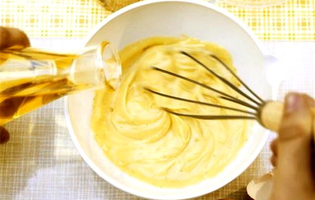 - Στη συνέχεια και χτυπώντας πάντα ρίχνετε σταγόνα-σταγονα το λάδι, ώστε να προλαβαίνει να απορροφηθεί χωρίς να χαλάσει η πυκνότητα. Όταν τελειώσετε και με το λάδι η μαγιονέζα είναι έτοιμη.