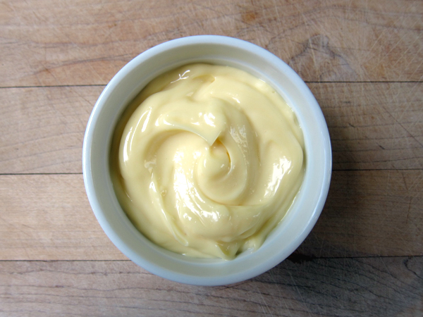 - Προσθέτετε σιγά - σιγά το λάδι, στην αρχή σταγόνα σταγόνα και κατόπιν από ψυλά με συνεχή ροή, ανακατεύοντας πάντα προς την ίδια κατεύθυνση. Όταν τελείωσετε τη διαδικασία, ρίχνετε στη μαγιονέζα 2 κουταλάκια του γλυκού χυμό λεμονιού με λίγο αλάτι.