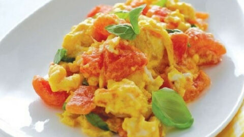 Συνταγή για στραπατσάδα -αυγά με ντομάτες- ενισχυμένη με γραβιέρα Νάξου
