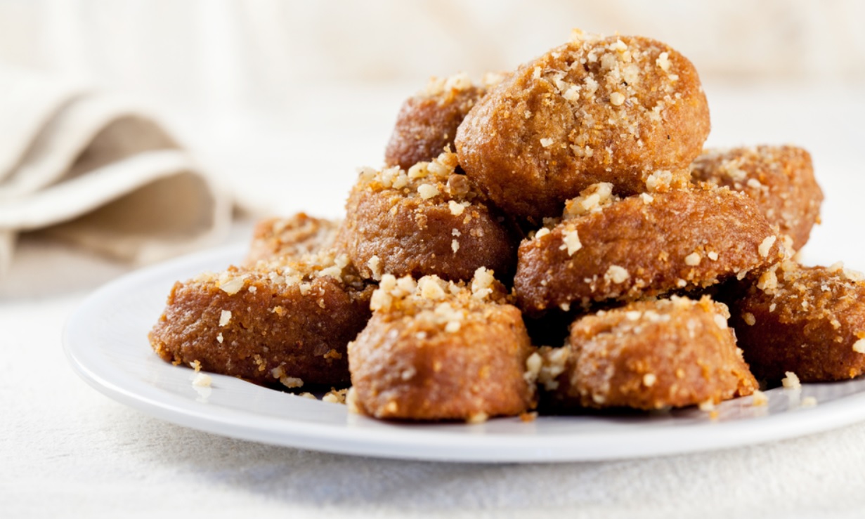 Παραδοσιακή συνταγή για μελομακάρονα γεμιστά με καρύδι και κανέλα χωρίς σιμιγδάλι. Τη συνταγή μας έδωσε η φίλη του ICookGreek, κ. Τούλα Βασιλοπούλου.