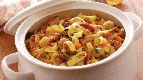 Συνταγή για πλατιά ζυμαρικά με κρεμύδια και μανιτάρια