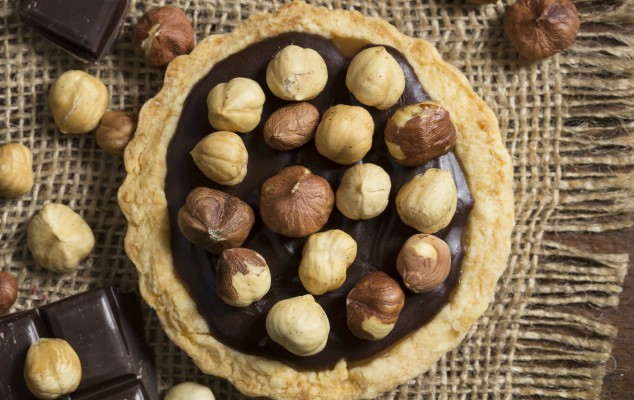 - Ρίχνετε τη λιωμένη σοκολάτα πάνω στην τάρτα. Τοποθετείτε το γλυκό στο ψυγείο για 4-5 ώρες μέχρι να πήξει και η σοκολάτα. Λίγο πριν σερβίρετε γαρνίρετε (προαιρετικά) και τα φουντουκιά.