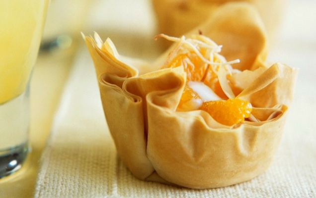 Ανάλαφρο γλύκισμα με αμυγδαλόκρεμα και φίνο άρωμα και γεύση μανταρινιού. Τα γλυκάκια αυτά σε τραγανό φύλλο κρούστας είναι ιδανικά ως επιδόρπιες μπουκίτσες.