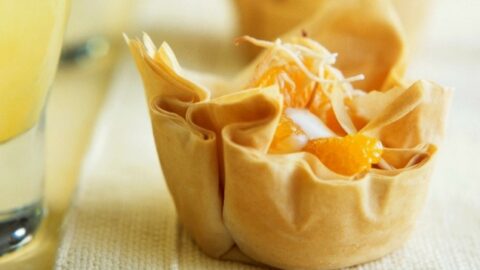 Ανάλαφρο γλύκισμα με αμυγδαλόκρεμα και φίνο άρωμα και γεύση μανταρινιού. Τα γλυκάκια αυτά σε τραγανό φύλλο κρούστας είναι ιδανικά ως επιδόρπιες μπουκίτσες.