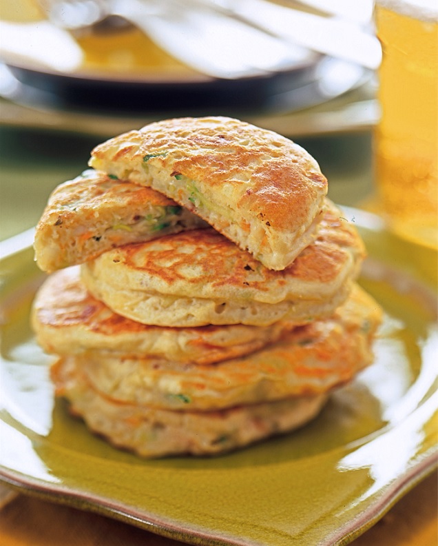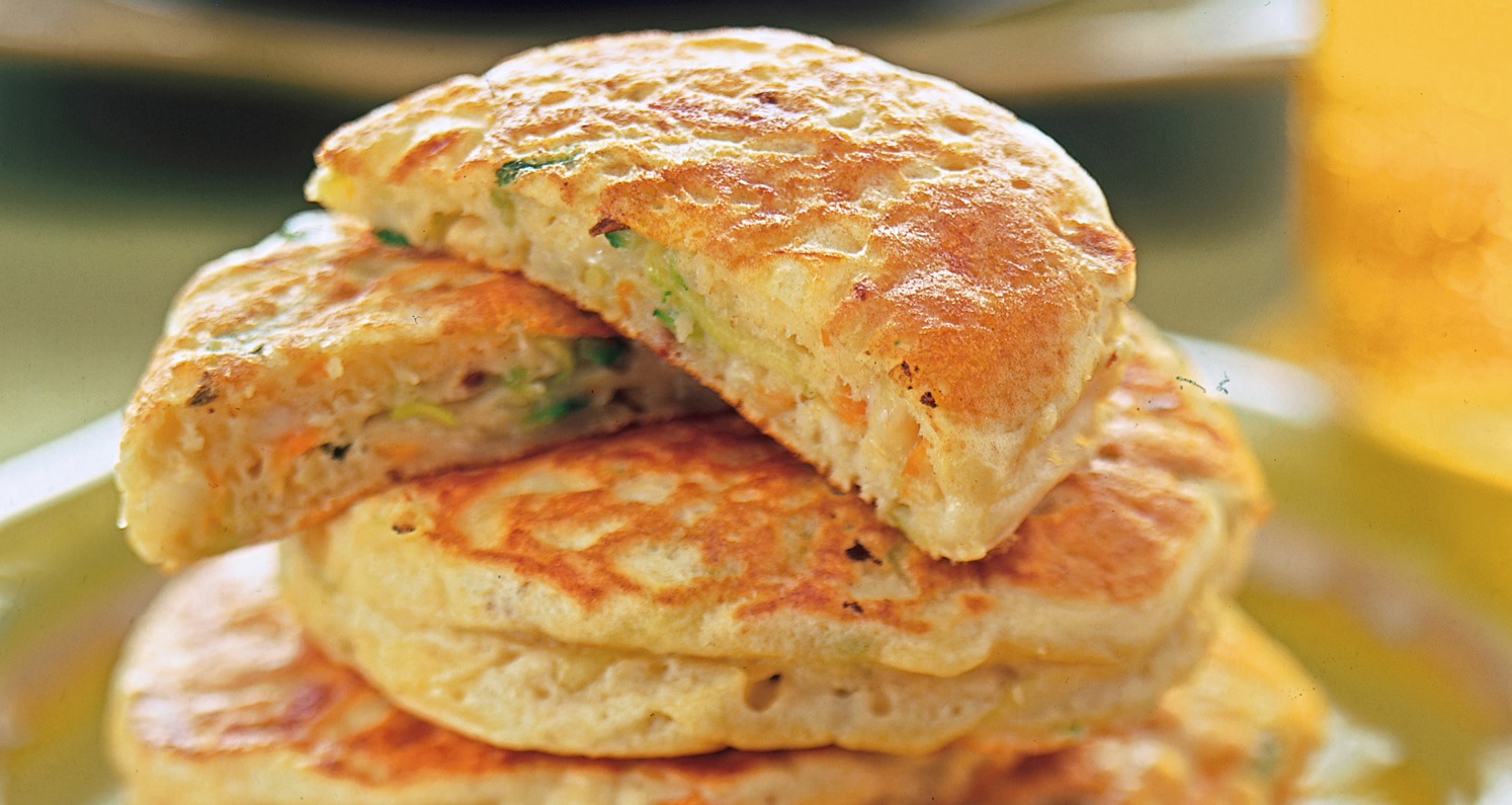 Μια ξεχωριστή συνταγή για αφράτες τηγανίτες με λαχανικά, χαλούμι και ξινόγαλο.
