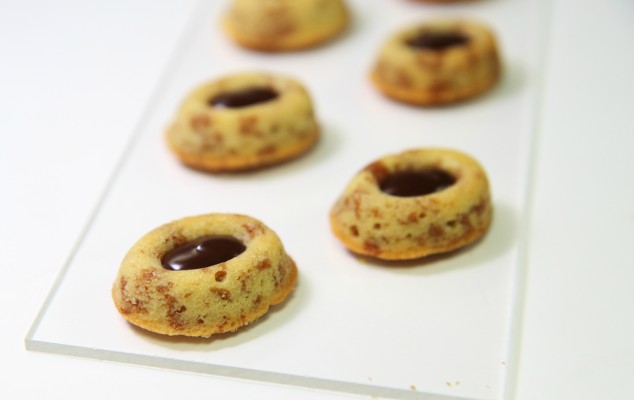 - Μόλις βγάλετε τα τιγράκια από το φούρνο, και όσο είναι ακόμα ζεστά, τα αφαιρείτε προσεκτικά από τα φορμάκια, και με ένα μικρό κουτάλι τα πιέζετε στο κέντρο για να δημιουργήσετε μια μικρή λακουβίτσα. Προσθέτετε σε κάθε λακουβίτσα σάλτσα σοκολάτας, αφήνετε τα τιγράκια να κρυώσουν και σερβίρετε.
