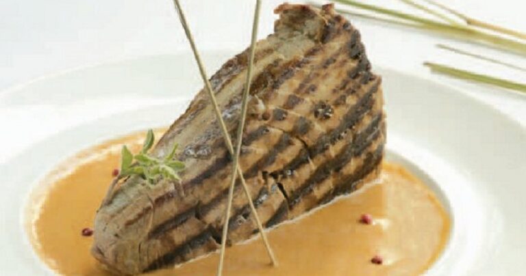 Η τρυφερή γλύκα του καρότου και του κρεμμυδιού τυλίγουν με ζεστασιά το σκούρο, όλο σφρίγος κρέας του φρέσκου τόνου. Οι αντιστάσεις χαλαρώνουν και ο σκληρός πρωταγωνιστής παραδίδεται στην αγκαλιά ενός μεστού Cabernet παντρεμένου με Αγιωργίτικο ή ακόμη και με βελούδινο Merlot και Λημνιό.
