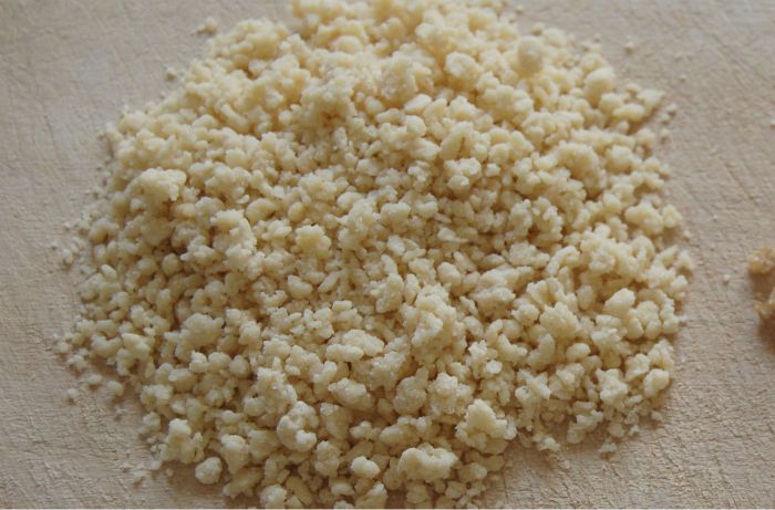- Κόβετε τη ζύμη που δημιουρθήθηκε σε κομμάτια και την απλώνετε σε ένα καθαρό σεντόνι σε ξηρό μέρος για 4-5 μέρες μέχρι να ξεραθεί. Στη συνέχεια τρίβετε με τα χέρια σας έτσι ώστε να δημιουργηθούν μικρότερα κομμάτα και να πάρει τη μορφή του τραχανά.