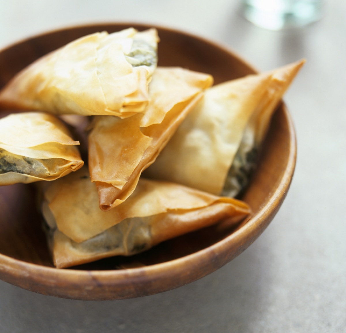 - Tυλίγετε τη λωρίδα με τη γέμιση σε τρίγωνο, αλείφετε την επιφάνεια του τρίγωνου με λίγο λάδι και τοποθετείτε τα τρίγωνα σε ταψί επίσης λαδωμένο. Ψήνετε τα πιτάκια για 20’ - 25’, μέχρι να ροδίσουν. Ιδεα: Αν θέλετε, μπορείτε να προσθέσετε στη γέμιση 300. γρ. φέτα ή κεφαλογραβιέρα τριμμένη, αλλά σε αυτή την περίπτωση μην αλατίσετε πολύ τα λαχανικά.