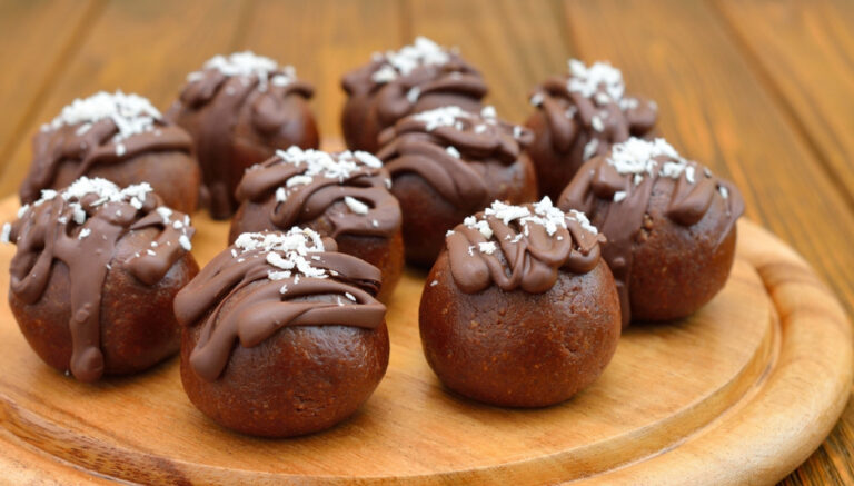 - Λιώνετε την κουβερτούρα και τη βάζετε σε κορνέ. Διακοσμείτε τα τρουφάκια στην κορφή τους με σοκολάτα και αφήνετε όση χρειαστεί να σφίξει.
