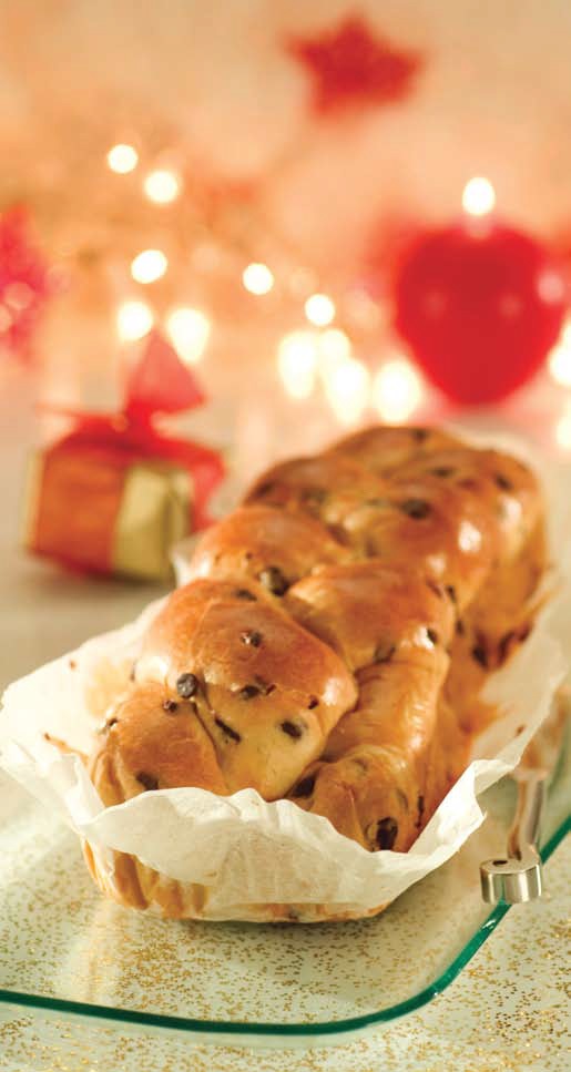 - Ανοίγετε τη ζύμη με τα χέρια σας σε δύο ορθογώνια κομμάτια, απλώνετε κατά μήκος τις σταγόνες κουβερτούρας και τους ξηρούς καρπούς και τα πλάθετε σε χονδρά κυλινδρικά κορδόνια. Τοποθετείτε τα κορδόνια ζύμης σε ορθογώνια φόρμα βουτυρωμένη και στρωμένη με λαδόκολλα και τις πλέκετε μεταξύ τους. Αφήνετε το τσουρέκι να φουσκώσει μέχρι να διπλασιαστεί σε όγκο. Ψήνετε 30΄στους 190-200 °C μέχρι να πάρει ρόδινο χρώμα.