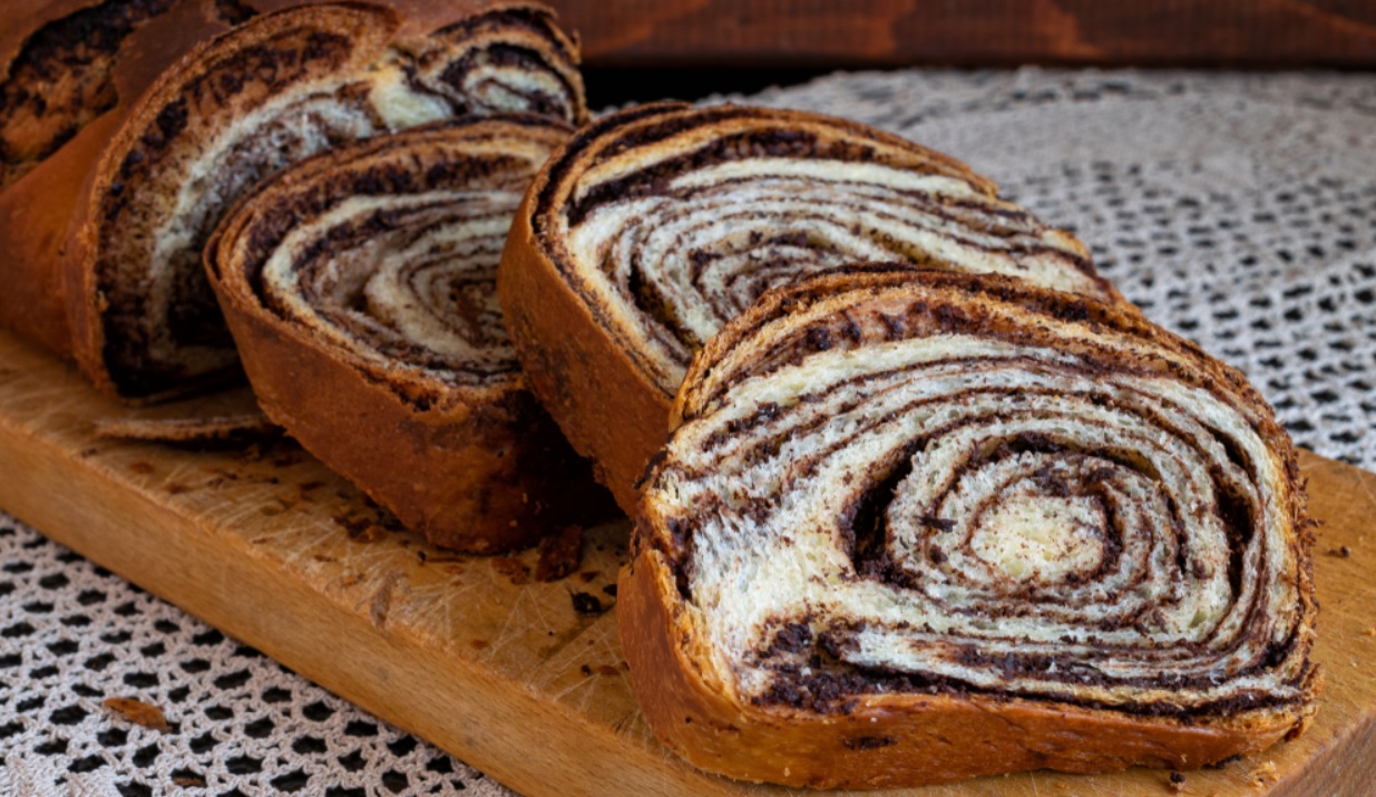 - Σκεπάζετε τη ζύμη και την αφήνετε σε ζεστό μέρος μέχρι να φουσκώσει, για 2 ώρες τουλάχιστον. Μόλις η ζύμη διπλασιαστεί σε όγκο, την πλάθετε σε κορδόνια και κατόπιν ανά 2 ή 3 σε κοτσίδες βάζοντας ανάμεσα στα κορδόνια τριμμένη σοκολάτα.