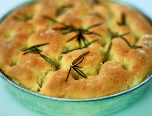 - Ζυμώνετε καλά, απορροφώντας σιγά σιγά το αλεύρι. Δίνετε στη ζύμη το σχήμα μπάλας, τη βάζετε σε μια αλευρωμένη λεκάνη και την αφήνετε να φουσκώσει για 1½ ώρα. Αλείφετε με λίγο λάδι δύο στρογγυλά ταψάκια. Μοιράζετε τη ζύμη στα ταψιά, πασπαλίζετε με λίγο χοντρό αλάτι και λίγο δεντρολίβανο και περιχύνετε με 1-2 κουταλιές της σούπας λάδι. Ψήνετε τα τυρόψωμα για 35’ - 40’ στους 200 °C.