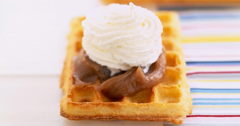 Σπιτικές βάφλες με μαρμελάδα ή πουρέ κάστανου και χιονάτη σαντιγί. Το απολαυστικό γλυκό σνακ αποκτά τις χαρακτηριστικές «κυψέλες» του, όταν ψηθεί σε βαφλιέρα. Ωστόσο γίνεται και στο τηγάνι.