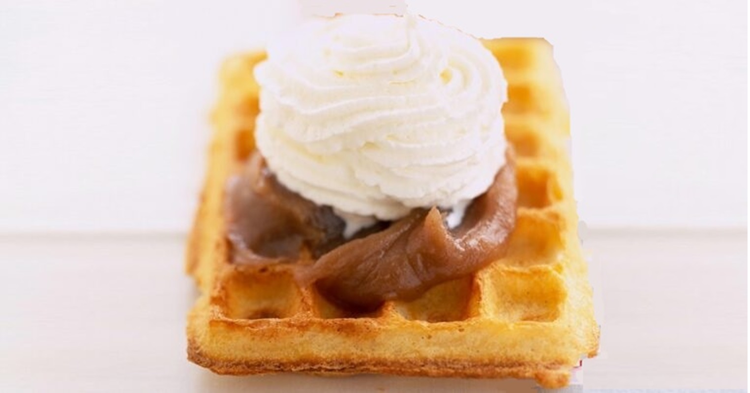 - Αν έχετε την ειδική συσκευή για βάφλες, τη βουτυρώνετε και τη ζεσταίνετε (αλλιώς χρησιμοποιείτε αντικολλητικό τηγάνι). Απλώνετε λίγο από το μείγμα και ψήνετε. Επαναλαμβάνετε την ίδια διαδικασία μέχρι να τελειώσουν τα υλικά. Σερβίρετε τις ζεστές βάφλες με τη μαρμελάδα κάστανου ή μερέντα και τη σαντιγί.