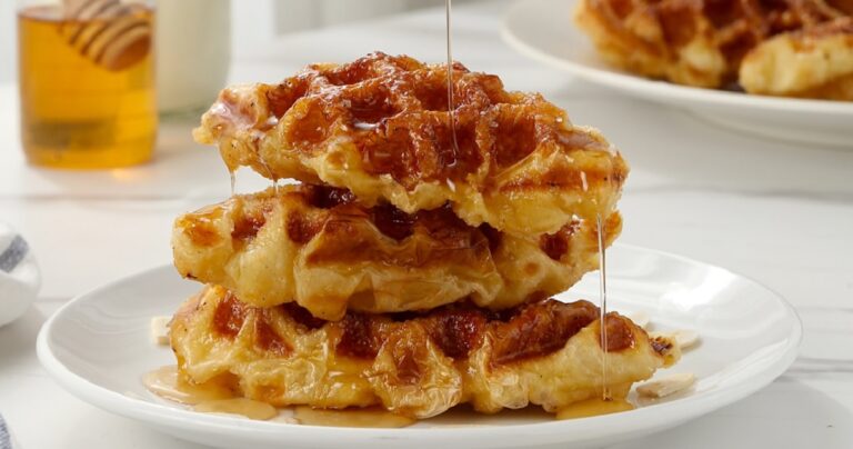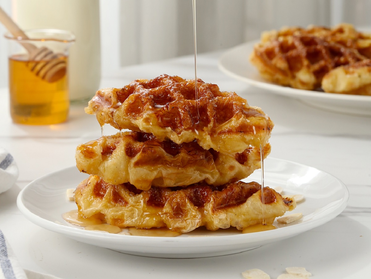 - Περιχύνετε τις βάφλες με όσο μέλι επιθυμείτε και σερβίρετε.