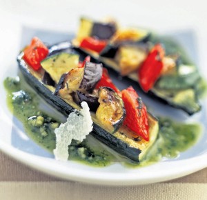 Ετούτος ο μεζές έχει ένταση στη γεύση και πληθωρικότητα στα αρώματα. Φουλ τυρένιος, με τις ευωδιές από το πέστο, τις πιπεριές και το σκορδάκι, αλλά και τη βελούδινη σαρκώδη μελιτζάνα που τα φιλοξενεί. Αυτές οι βαρκούλες θα πλευρίσουν ένα γεμάτο και λιπαρό Chardonnay ή -αν επιμένουμε στα κόκκινα- ένα γενναι-όδωρο Pinot Noir.