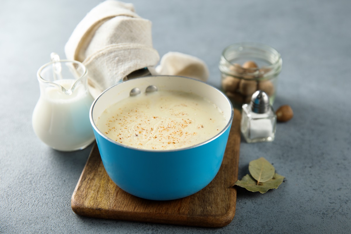 - Ζεσταίνουμε σε κατσαρόλα το αλεύρι και το βούτυρο ανακατεύοντας και ψήνοντάς το για 4'-5'. Προσθέτουμε το γάλα συνεχίζοντας σταθερά το ανακάτεμα με έναν αυγοδάρτη. Όταν η μπεσαμέλ μας πάρει βράση και αρχίσει να πήζει, την αποσύρουμε από τη φωτιά.