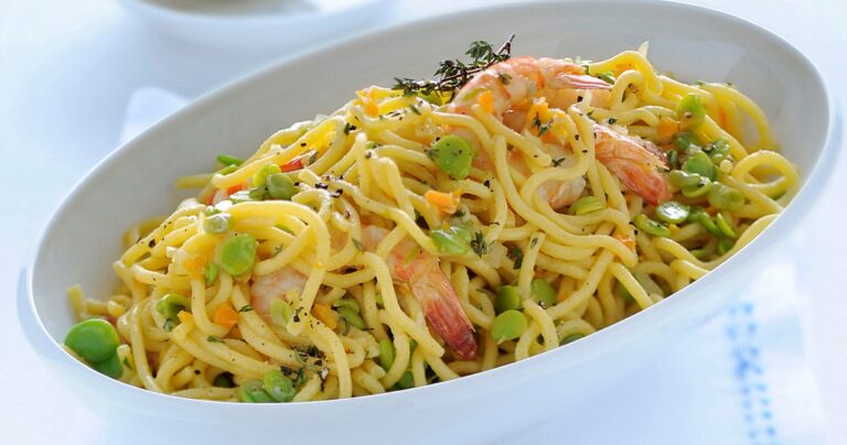 Συνταγή για μακαρονάδα με γαρίδες, αρακά και λαχανικά