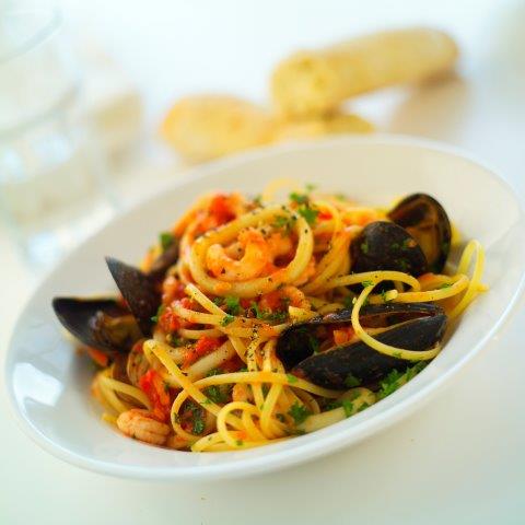 - Αποσύρετε από τη φωτιά και προσθέτετε το μαϊντανό, τις γαρίδες και τα μύδια. Ανακατεύετε καλά. Στο μεταξύ όση ώρα ετοιμάζετε τη σάλτσα βράζετε τα σπαγγέτι σε άφθονο αλατόνερο. Τα στραγγίζετε και τα ανακατεύετε με τα μύδια και τη σάλτσα ντομάτας.