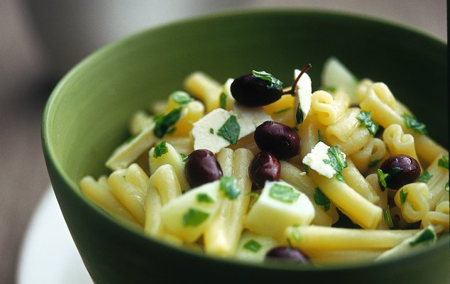 - Βράζετε τα ζυμαρικά σύμφωνα με τις οδηγίες της συσκευασίας τους και τα στραγγίζετε. Τα αδειάζετε σε σαλατιέρα και, όπως είναι καυτά, τα περιχύνετε με τη σάλτσα της ωμής ντομάτας. Σκορπίζετε το τυρί, την πάστα ελιάς και την κάππαρη. Γαρνίρετε τα ζυμαρικά με φύλλα ρόκας και ελιές και σερβίρετε.