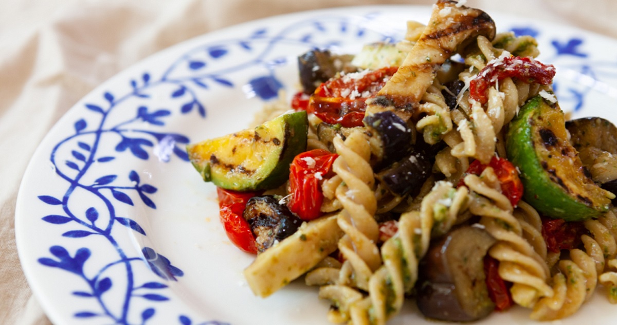 Συνταγή για ζυμαρικά με ψητά λαχανικά και μεσογειακά μυρωδικά