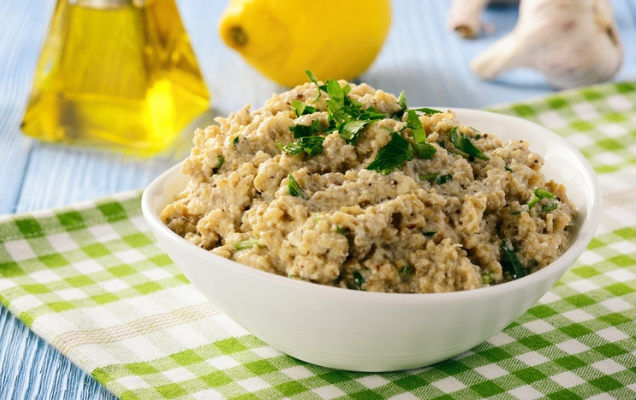 Μελιτζανοσαλάτα με κατίκι και πατέ ελιάς