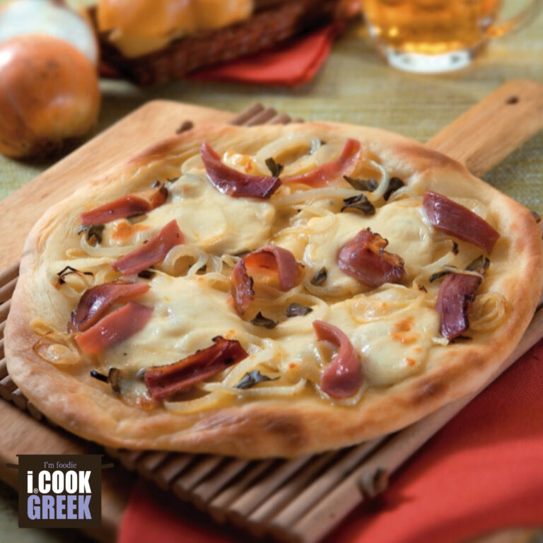 Σπιτική πίτσα με σάλτσα ντομάτα και τυριά