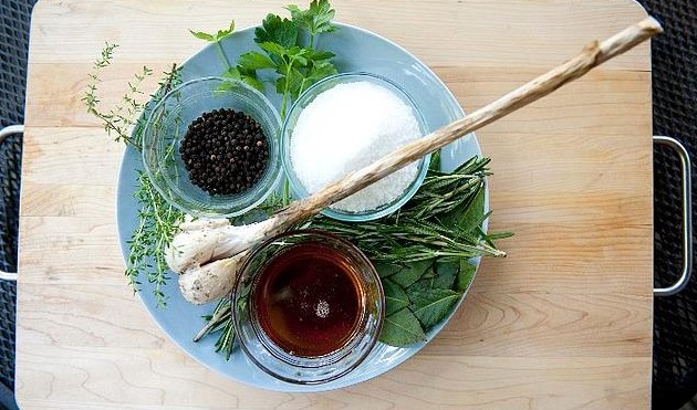 4. Μαρινάτα για λαχανικά: 5 κουταλιές της σούπας ρίγανη, 5 κουταλιές της σούπας χοντρό αλάτι, 4 κουταλιές της σούπας πάπρικα, 4 κουταλιές της σούπας αλεσμένοι μαραθόσποροι, 3 κουταλιές της σούπας σκόρδο σκόνη, 3 κουταλιές της σούπας κρεμμύδι αποξηραμένο, 2 κουταλιές της σούπας πιπέρι καγιέν ,4 κουταλιές της σούπας μαύρη ζάχαρη, 5 κουταλιές της σούπας ελαιόλαδο. Χρόνος μαριναρίσματος: 1 1/2 ώρα