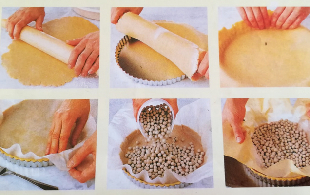 - Γεμίζετε το χαρτί με στραγάλια, φασόλια ή άλλα όσπρια ωμά για βάρος -θα εμποδίσουν τη ζύμη να φουσκώσει.