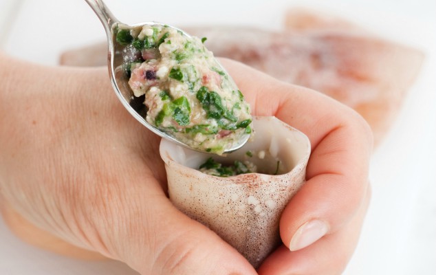 Λαχταριστές συνταγές σπιτικής κουζίνας που βγαίνουν εύκολα χάρις τα φωτογραφημένα στάδιά τους. Φτιάχνουμε καλαμάρια γεμιστά με τυρί και μυρωδικά .