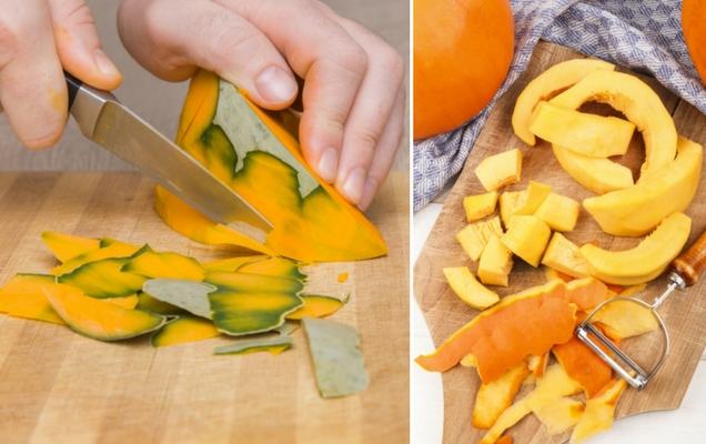 5. Κόψτε σε κομμάτια ή τρίψτε τη σάρκα κολοκύθας ανάλογα με το τι σας υποδεικνύει η συνταγή σας.