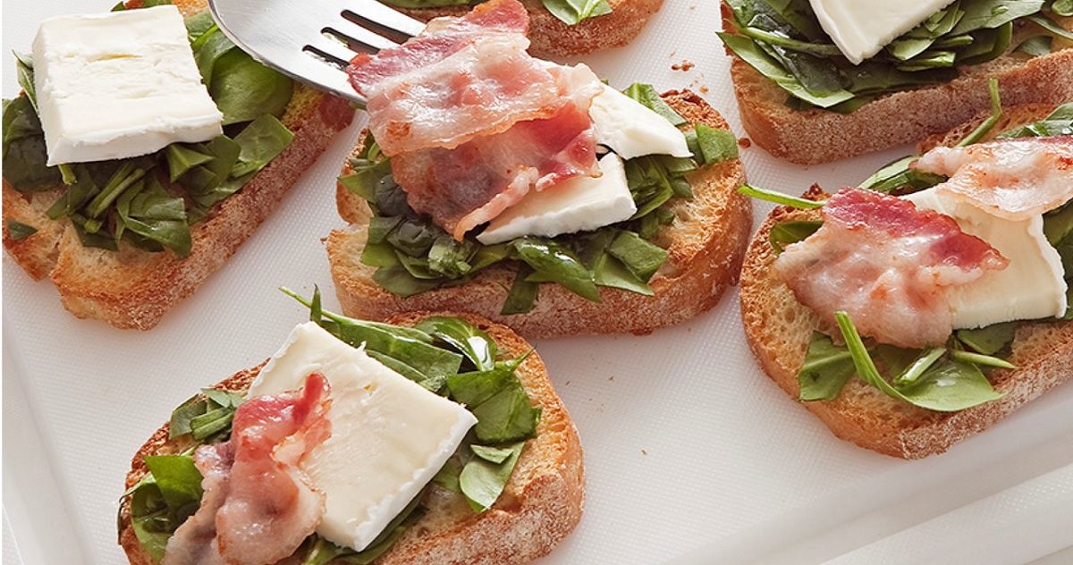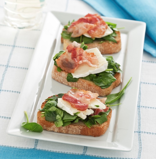 Φρυγανισμένο Ψωμί με Σπανάκι, Μπέικον και Κατσικίσιο Τυρί