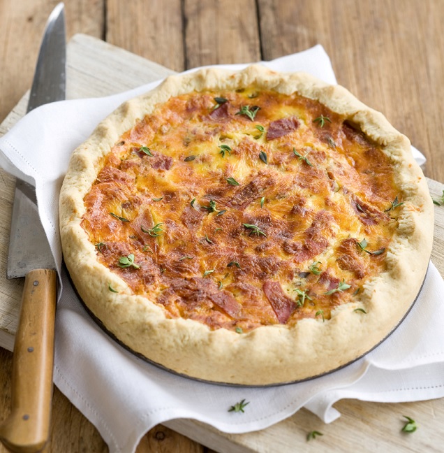 Φτιάχνουμε πεντανόστιμη πίτα με σπιτική ζύμη, τυριά και αλλαντικά. Δείτε τη συνταγή.