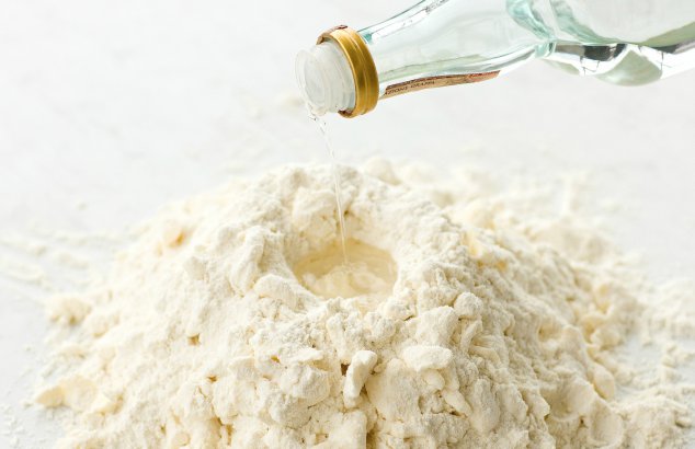1ο βήμα. Ανακατεύετε τη μαγιά με το αλεύρι. Διαλύετε τη ζάχαρη και το αλάτι στο νερό και τα προσθέτετε στο μείγμα του αλευριού μαζί με τη ρακή ή το ούζο και το λάδι. Ζυμώνετε το μείγμα με τα χέρια σας μέχρι να αποκτήσετε μια ζύμη ομοιόμορφη και ελαστική (όχι πολύ σφιχτή).
