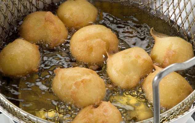 Ζεσταίνετε το καλαμποκέλαιο σε μικρή κατσαρόλα και τηγανίζετε τη ζύμη παίρνοντάς τη από το μπολ κουταλιά κουτάλια.