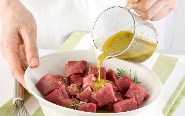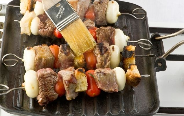 BHMA 3. Ψήνετε τα σουβλάκια στα κάρβουνα ή στο γκριλ για 15΄-20΄ γυρίζοντάς τα συχνά και αλείφοντάς τα κατά τη διάρκεια του ψησίματος με τη μαρινάτα (με τη βοήθεια ενός πινέλου). Σερβίρετε τα σουβλάκια με πράσινη σαλάτα..