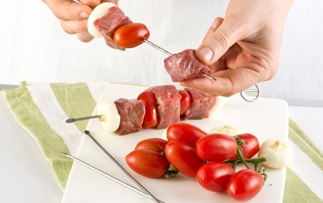 Συνταγές σπιτικής κουζίνας που βγαίνουν ευκολότερα χάρις τα φωτογραφημένα στάδιά τους. Φτιάχνουμε σουβλάκια με μοσχαρίσιο φιλέτο, ντοματίνια και κρεμμύδια.