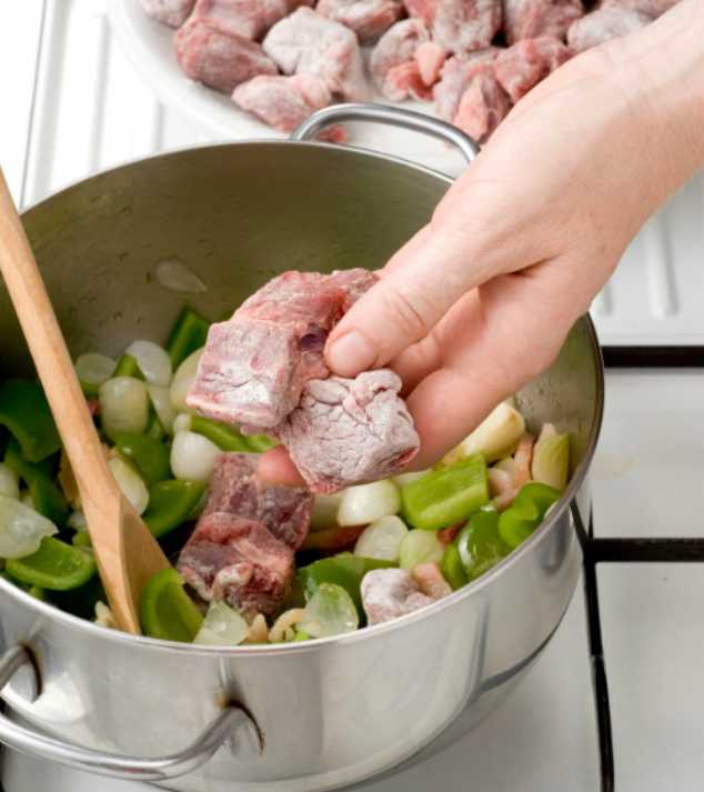 ΒΗΜΑ ΒΗΜΑ | Λαχταριστές συνταγές σπιτικής κουζίνας που βγαίνουν εύκολα χάρις τα φωτογραφημένα στάδιά τους. Φτιάχνουμε μοσχάρι κατσαρόλας με πιπεριές και πουρέ πατάτας.