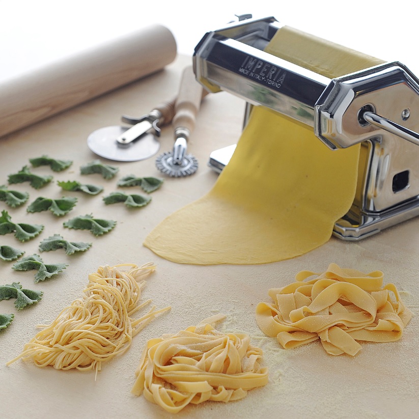 TIP: Μπορείτε να χρωματίσετε τα ζυμαρικά σας με φυσικά αγνά χρώματα. Στην περίπτωση αυτή πρέπει να μειώσετε κατά 1 τα αυγά της βασικής συνταγής και να προσθέσετε 350 γρ. βρασμένα πατζάρια για μοβ χρώμα, 350 γρ. πουρέ από σπανάκι για πράσινο χρώμα ή 350 γρ. βρασμένα καρότα για πορτοκαλί χρώμα.