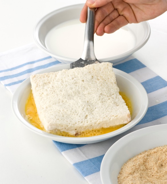 ΒΗΜΑ 2. Χτυπάτε τους κρόκους των αυγών με αλάτι και πιπέρι και αραιώνετε το μείγμα με το γάλα, χτυπώντας μέχρι να ομοιογενοποιηθούν. Βουτάτε τα σάντουιτς στο μείγμα αυτό και από τις δύο πλευρές τους.