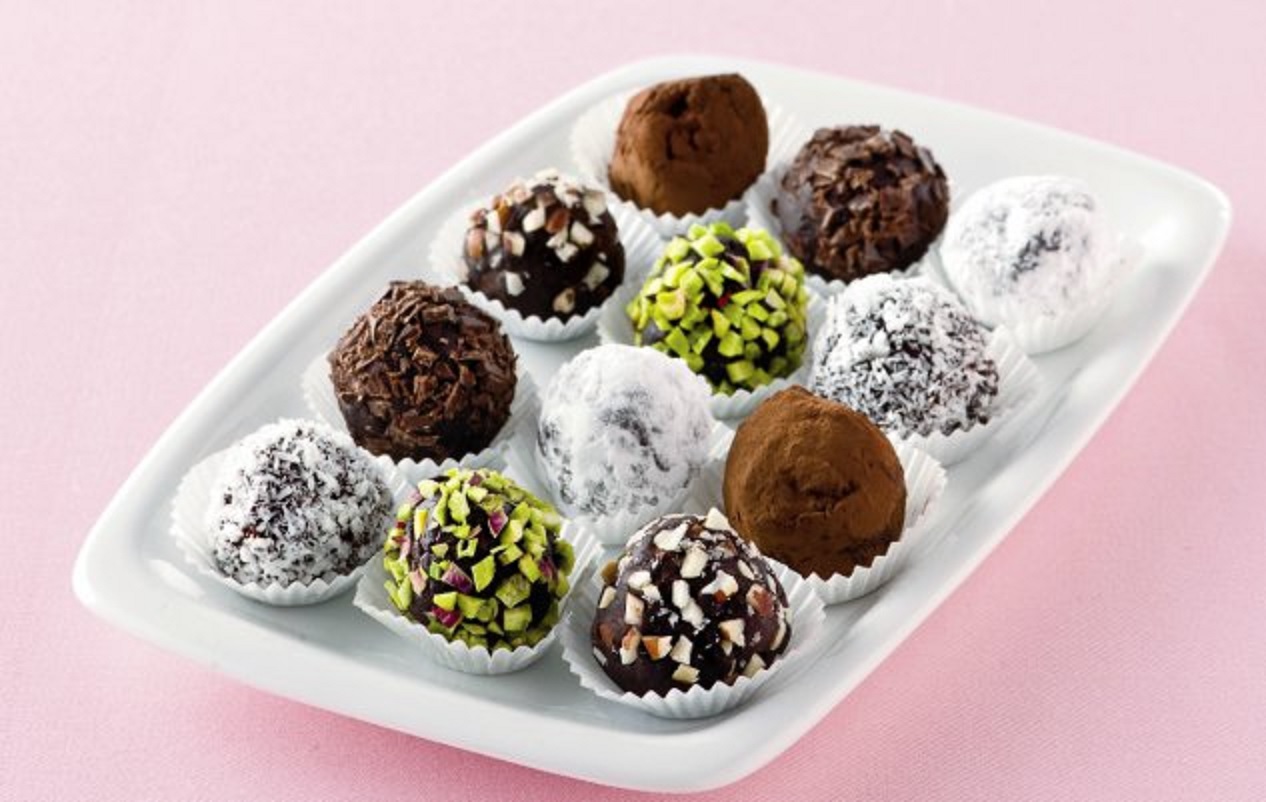 •    κακάο, ζάχαρη άχνη και  τρούφα σοκολάτας  για το πασπάλισμα