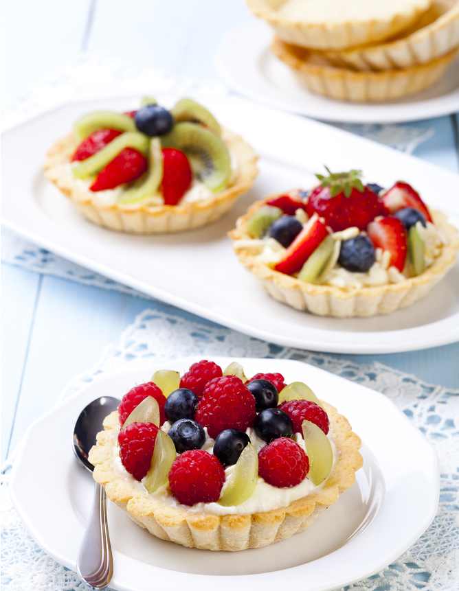 Κεράσια, φράουλες, ακτινίδια, σταφύλια, μπορούν να γεμίσουν τις καλοκαιρινές τάρτες. Μπορούν απλωθούν πάνω σε στρώση μαρμελάδας ή κρέμας.
