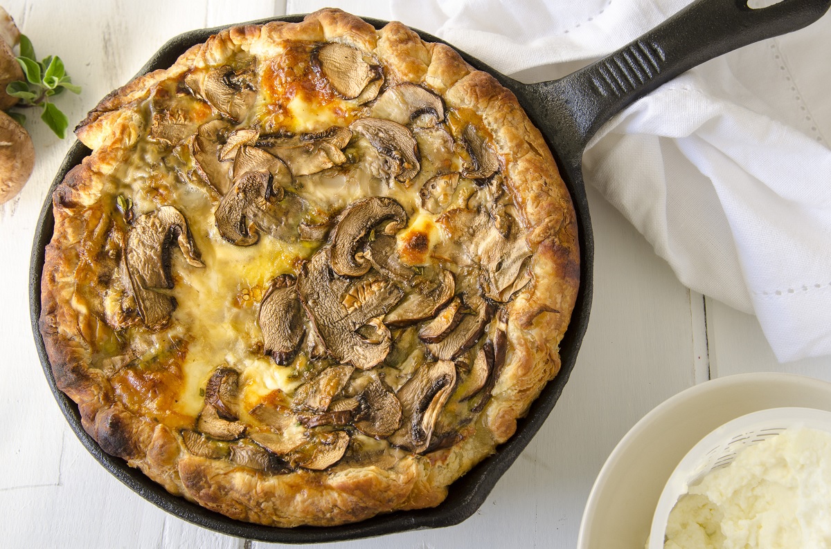 Νόστιμες ιδέες για το καθημερινό τραπέζι. Φτιάχνουμε μανιταρόπιτα με καπνιστή πάπρικα, μανούρι και γραβιέρα.