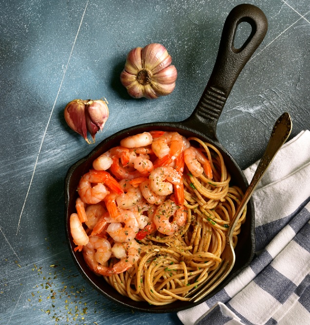 Τα θαλασσινά συνδυασμένα με κάποιο ζυμαρικό «για να φτουρήσουν» που έλεγαν και οι παλιοί είναι από τα πιάτα που πρωταγωνιστούν την περίοδο της Σαρακοστής. Δοκιμάστε αυτή την απλή αλλά πεντανόστιμη γαριδομακαρονάδα με ντομάτα και σκορδάκι, χρησιμοποιώντας σπαγγέτι κλασικά ή ολικής για μεγαλύτερη θρεπτική ισορροπία στο πιάτο.