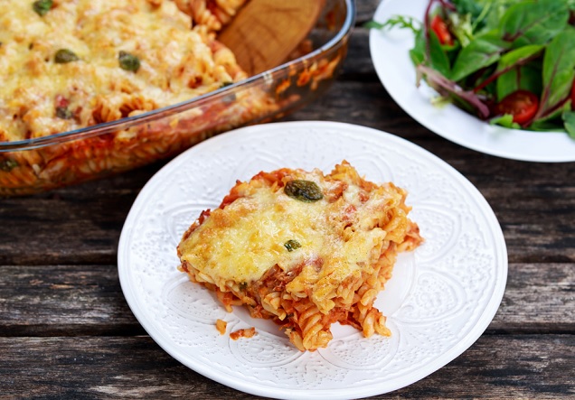 Ζυμαρικά φούρνου με σάλτσα τόνου και κίτρινα τυριά