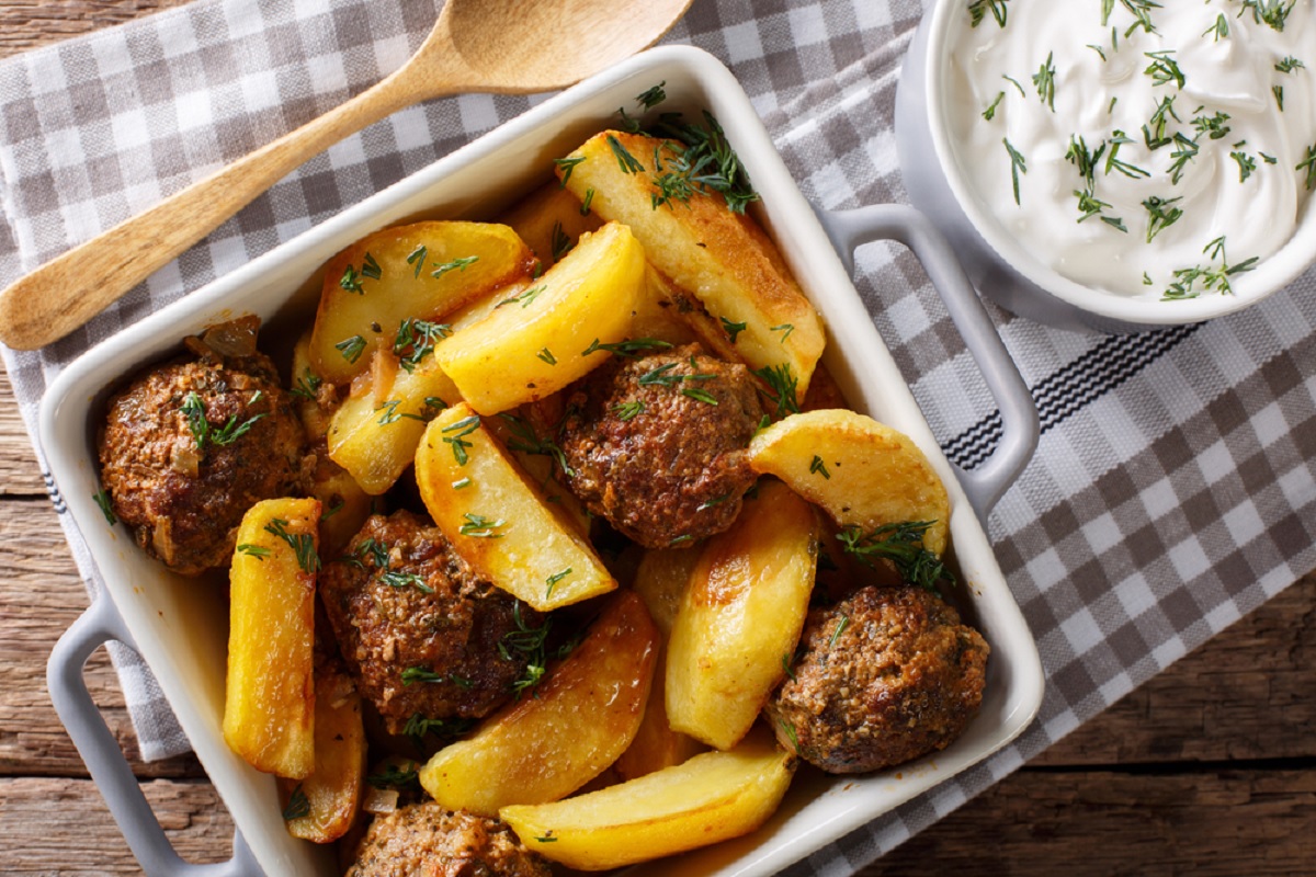 Τι να μαγειρέψω σήμερα, Παρασκευή; Φουρνιστούς κεφτέδες με πατάτες & σάλτσα ξινόκρεμας