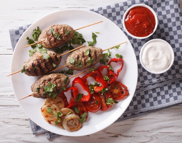 Υλικά • 500 γρ. κιμάς μοσχαρίσιος • 500 γρ. κιμάς χοιρινός • 5 κουταλιές της σούπας ελαιόλαδο για το μείγμα και λίγο επιπλέον για το ψήσιμο • 2 κρεμμύδια ψιλοκομμένα • 1 πράσο ψιλοκομμένο • 2 πατάτες βρασμένες και λιωμένες με πιρούνι • ½ ματσάκι μαϊντανός ψιλοκομμένος • αλάτι, πιπέρι • πιπεριές, κρεμμύδια ή άλλα λαχανικά για γαρνιτούρα