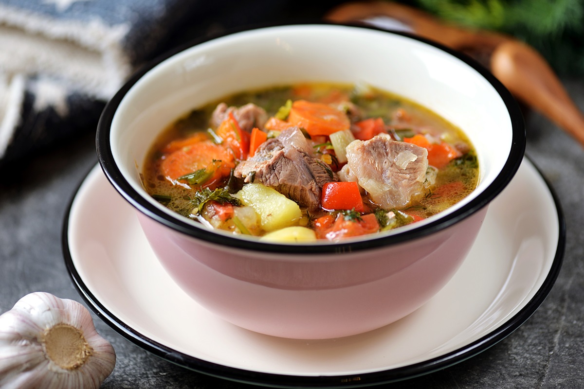Ας ζεστάνουμε τούτη τη γκρίζα Πέμπτη με μια παραδοσιακή σούπα από μοσχάρι με διάφορα λαχανικά, πατάτες, καρότα, σέλινο. Όποιος τη θέλει πιο καυτερή, μπορεί να προσθέσει καυτερή πιπερίτσα, μπούκοβο ή μερικές σταγόνες tabasco.